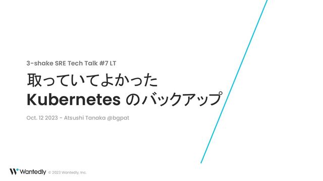 © 2023 Wantedly, Inc. 取っていてよかった Kubernetes のバックアップ 3-shake SRE Tech