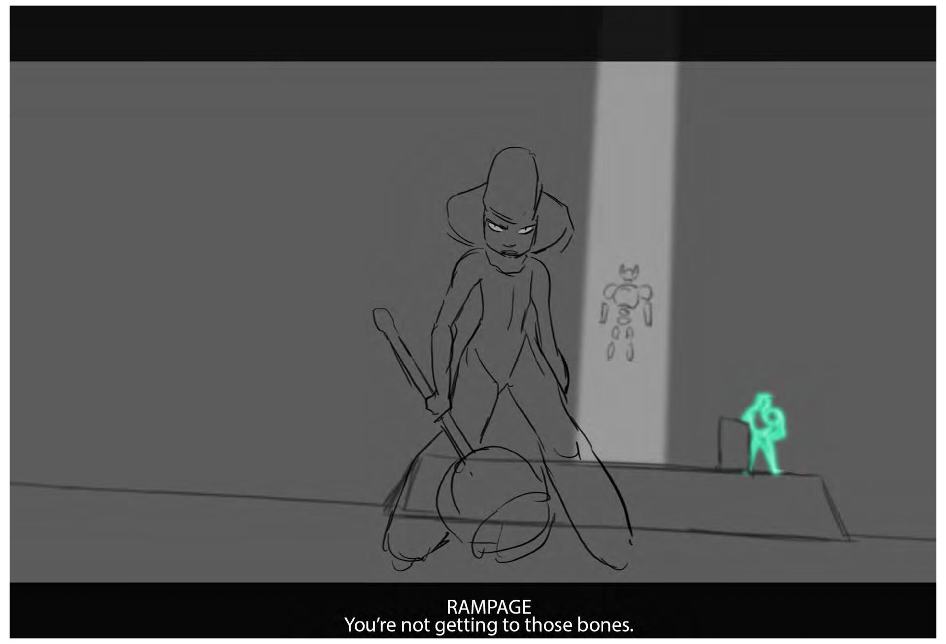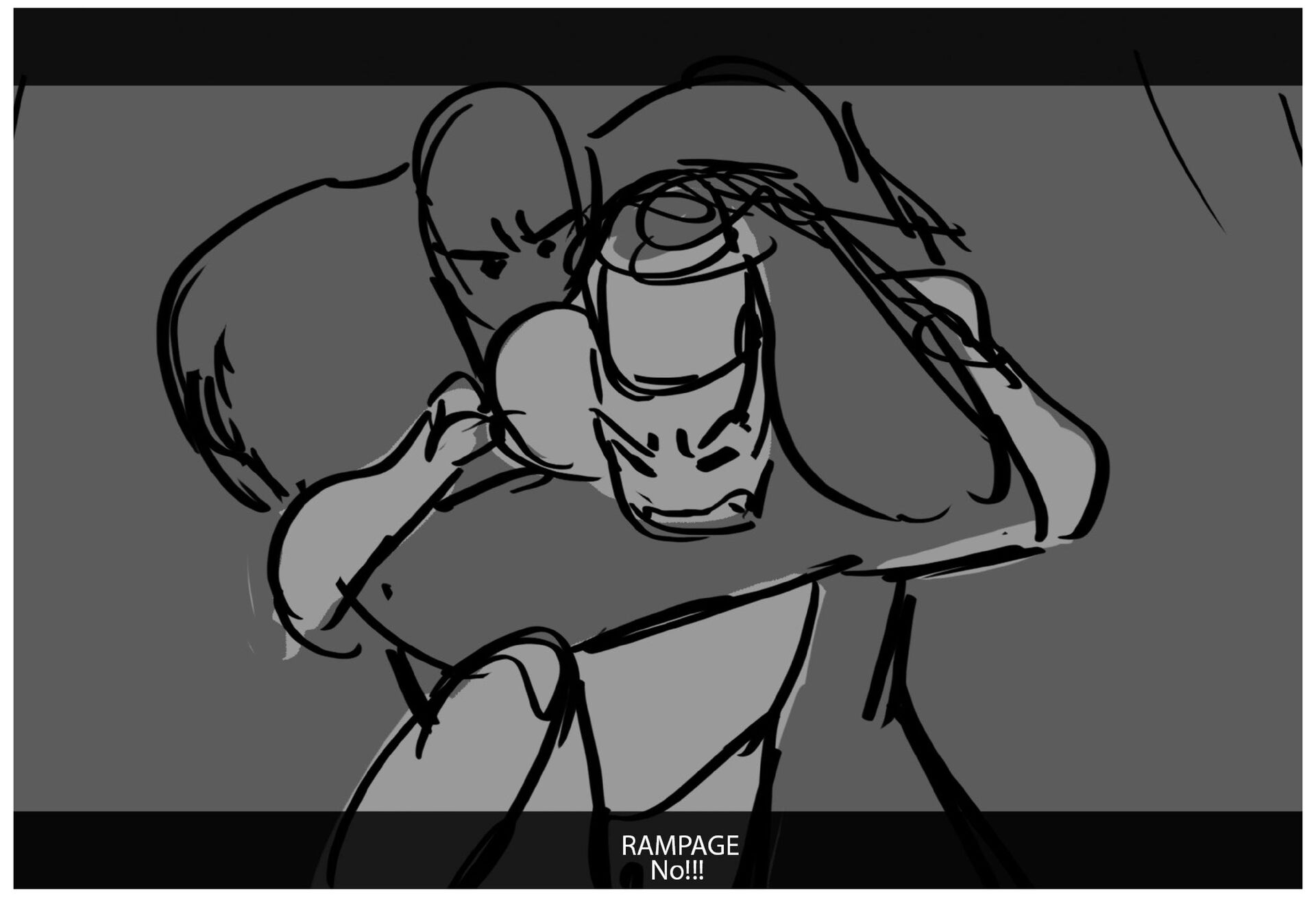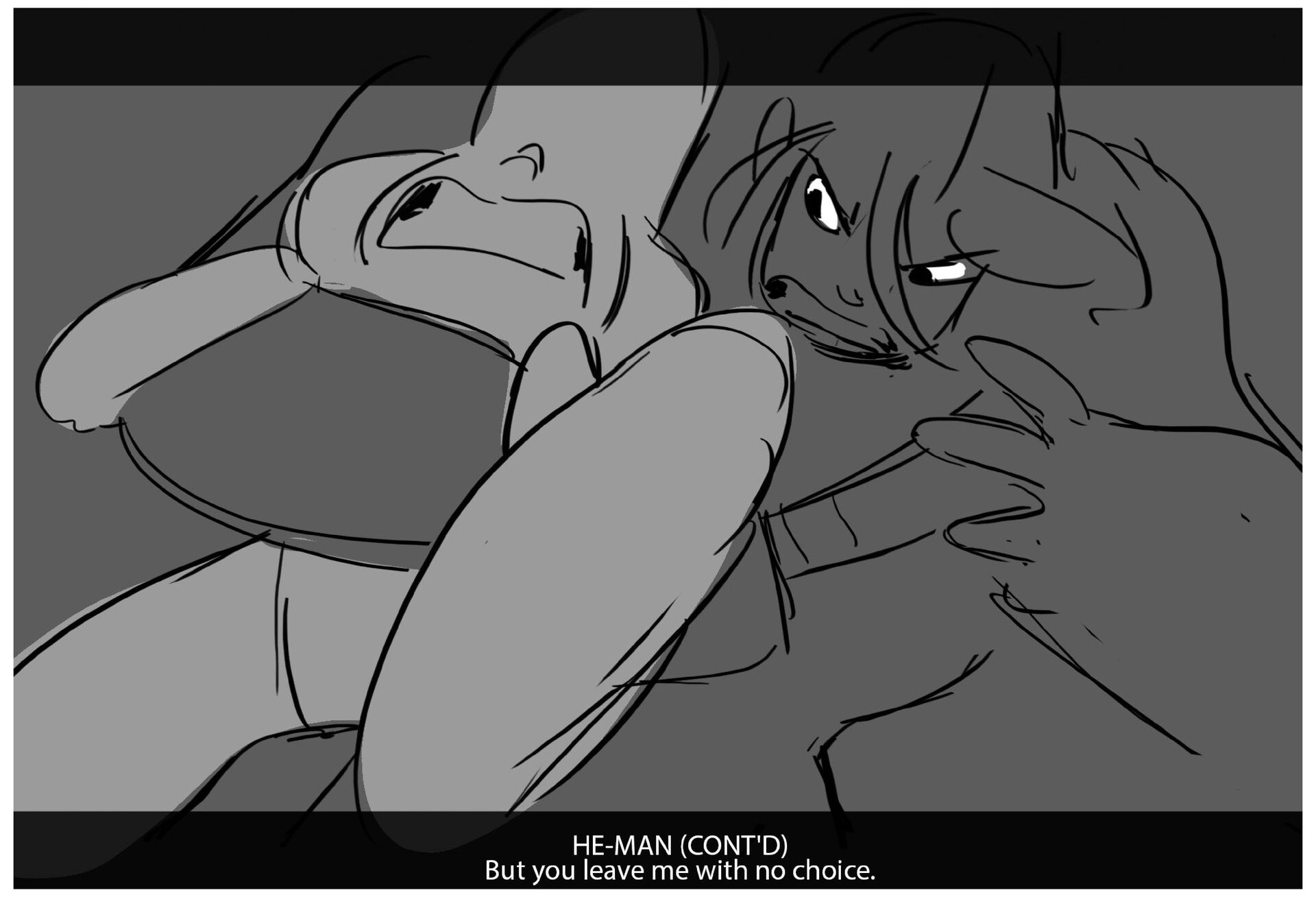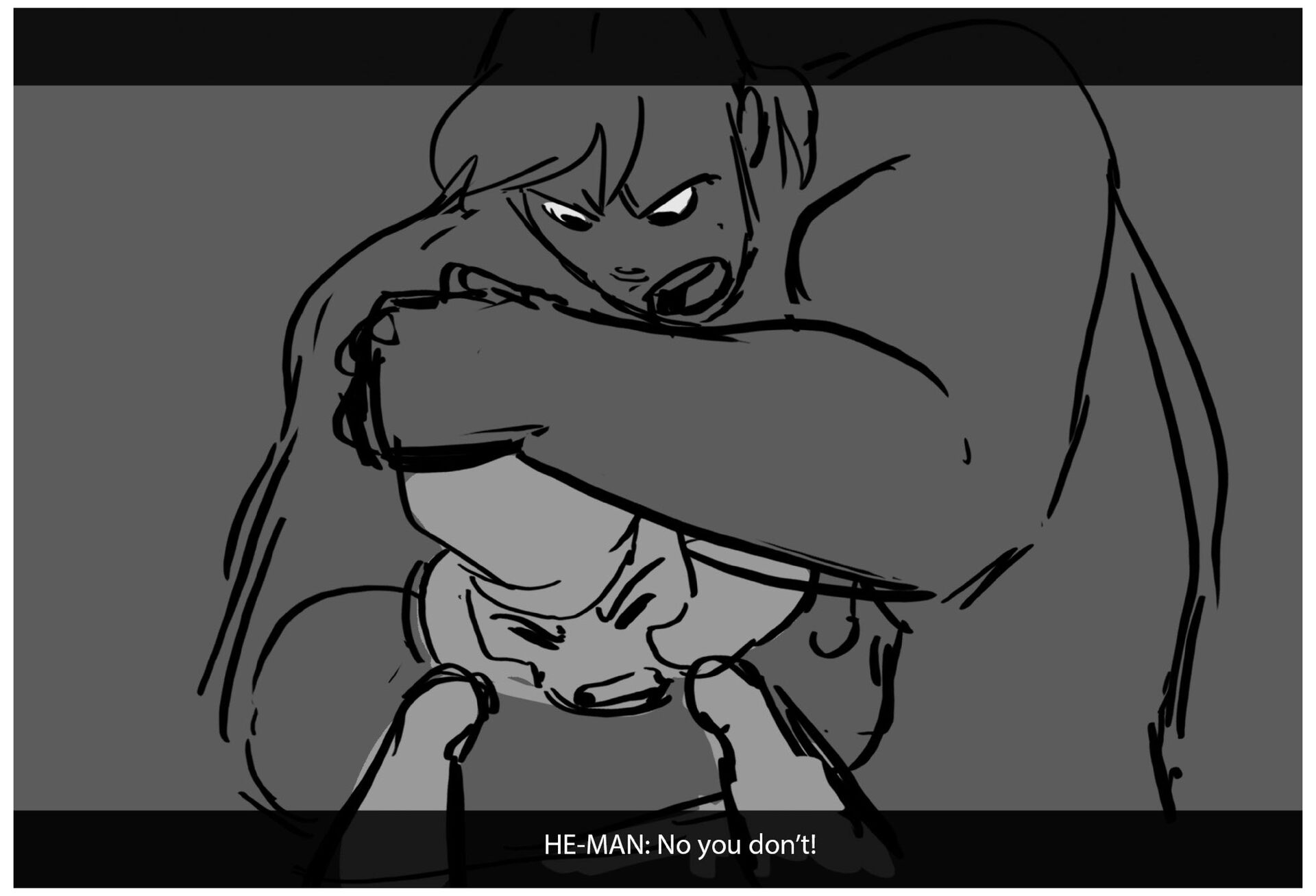 FIGHT; He-man + Ram-Maam fight; He-man is trying to stop Skeletor and Ram-Maam won't let him approach
