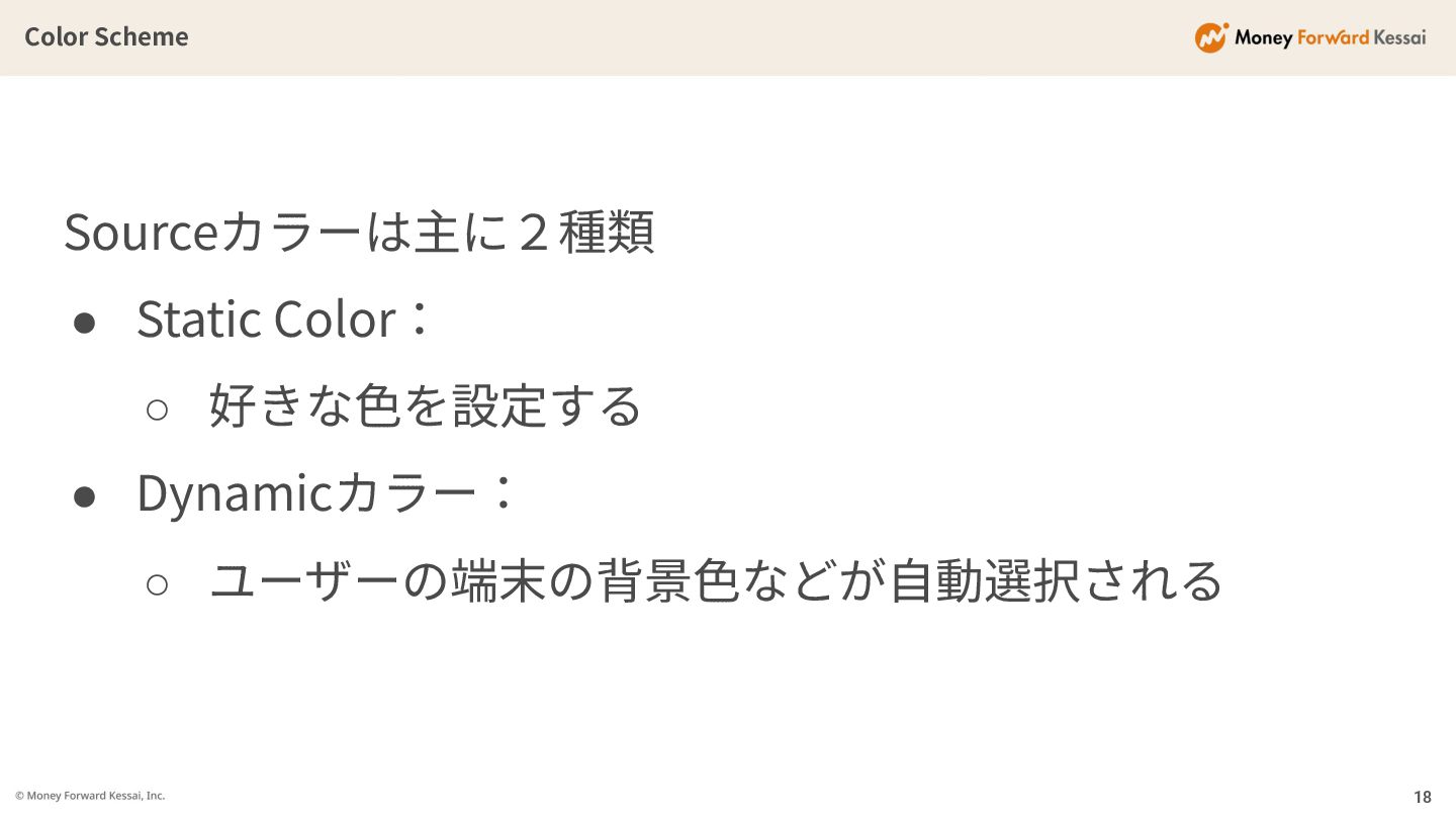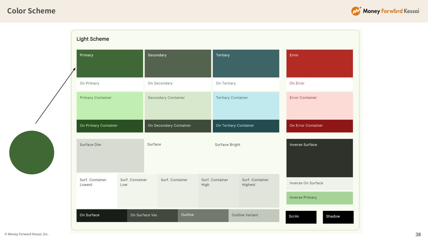 Color Scheme Material3では デザイナーの⾊の選択権は ほぼありません 15