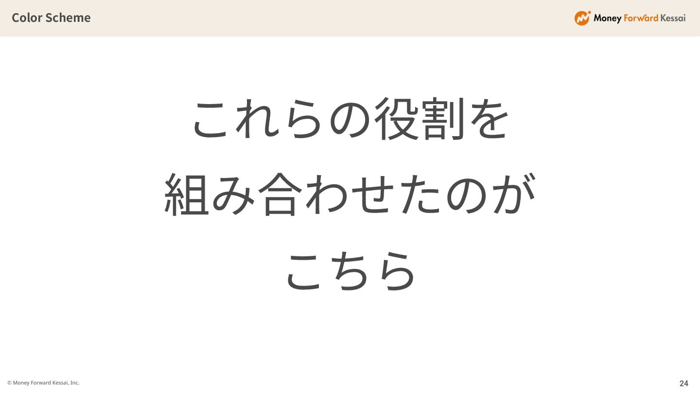 Color Scheme これらの役割を 組み合わせたのが こちら 24
