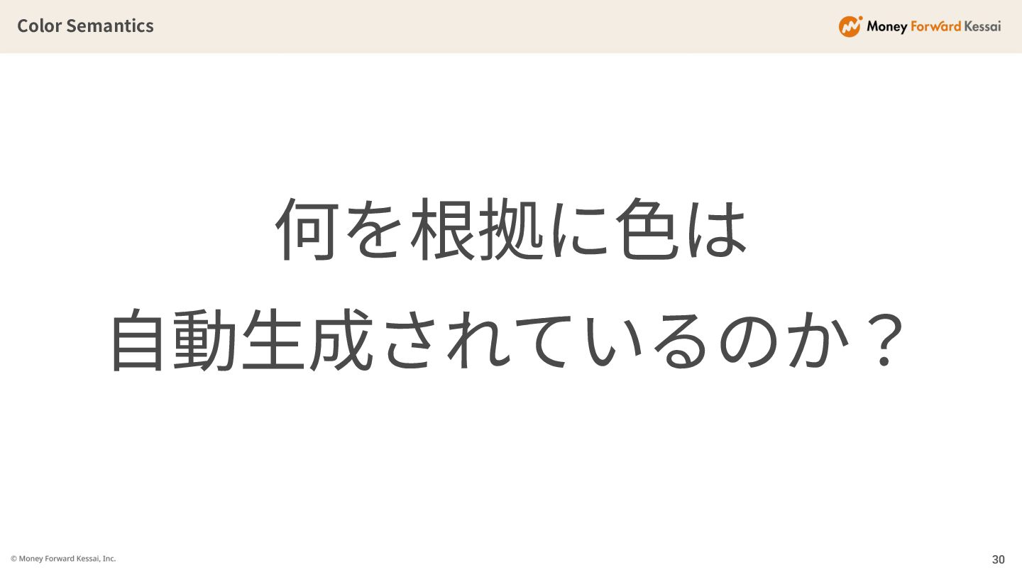 Color Semantics 何を根拠に⾊は ⾃動⽣成されているのか? 30
