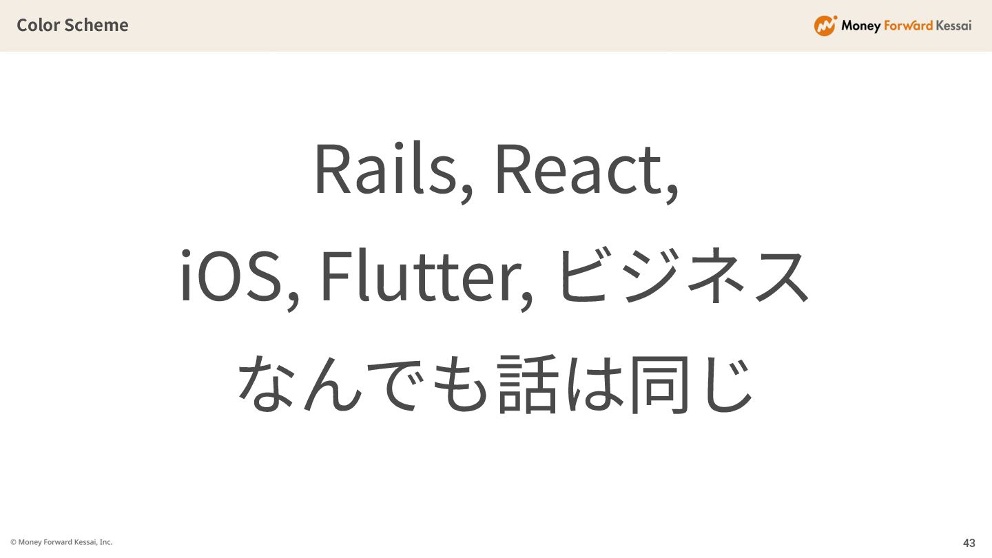Color Scheme Rails, React, iOS, Flutter, ビジネス なんでも話は同じ 43