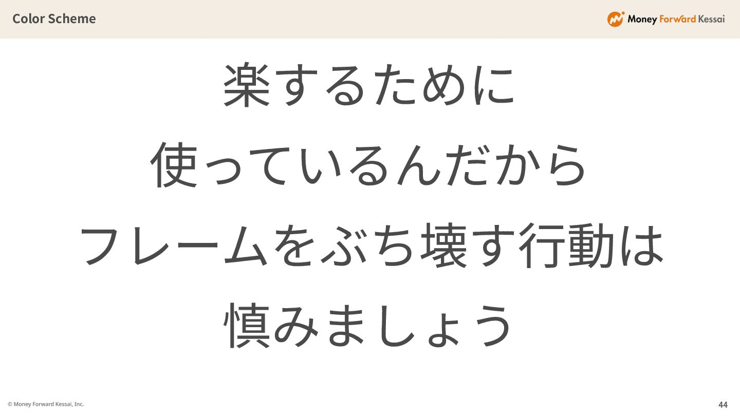 Color Scheme 楽するために 使っているんだから フレームをぶち壊す⾏動は 慎みましょう 44