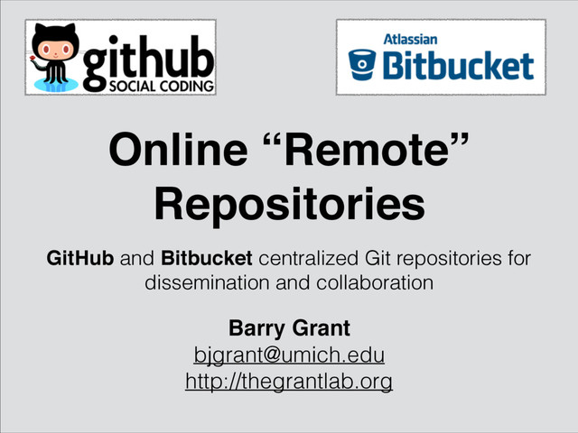 Introduction to the popular social code-hosting platforms GitHub and BitBucket. This follows on from our 'introduction to version control with git' slides. Here we cover: