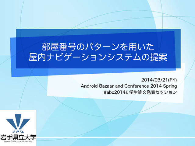 2014/03/21 Android Bazaar and Conference 2014 Spring ( #abc2014s )の学生論文発表セッションに登壇したときのスライドです。