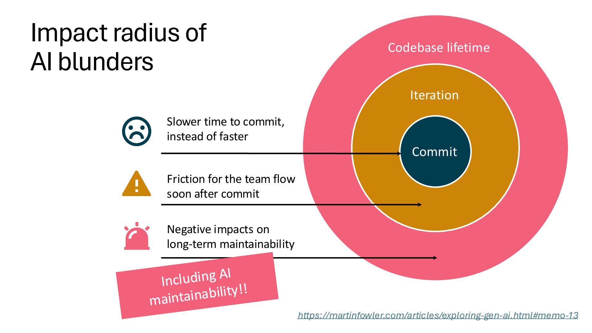 Friction for the team flow soon after commit Slower time to commit, instead of faster Negative impacts on long-term maintainability https://martinfowler.com/articles/exploring-gen-ai.html#memo-13