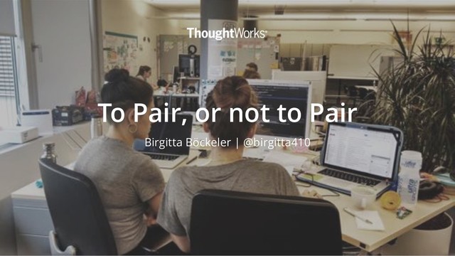 A talk about pair programming, an agile development practice that still has only relatively patchy adoption across the industry. I talked about a few of the top benefits, then highlighted the challenges, and talked about why I believe those challenges are worth the hassle.