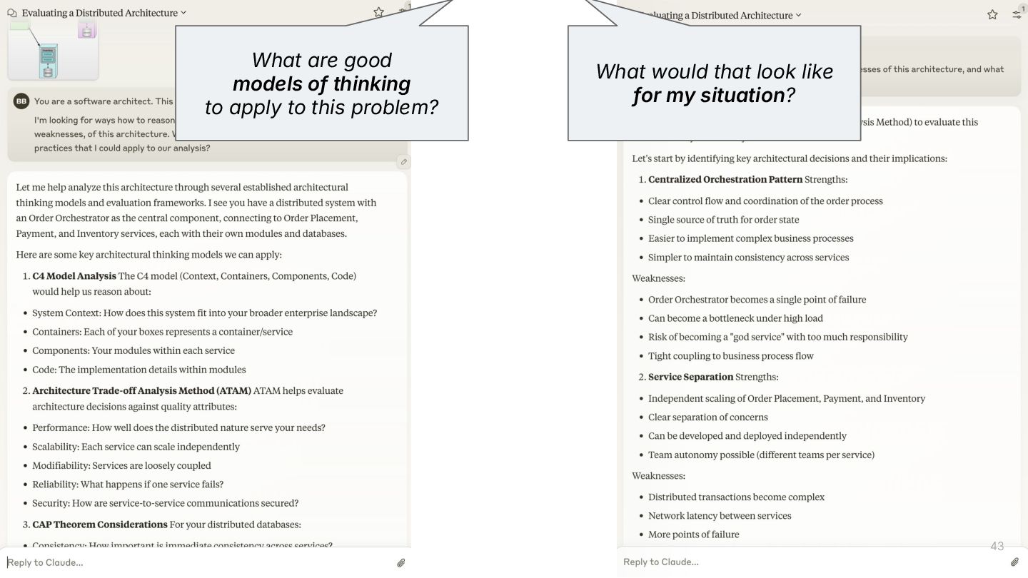 apply understand What are good models of thinking to apply to this problem? What would that look like for my situation? LLM Amplify a practice with a prompt 44 Reusable prompt Architectʼs require- ments