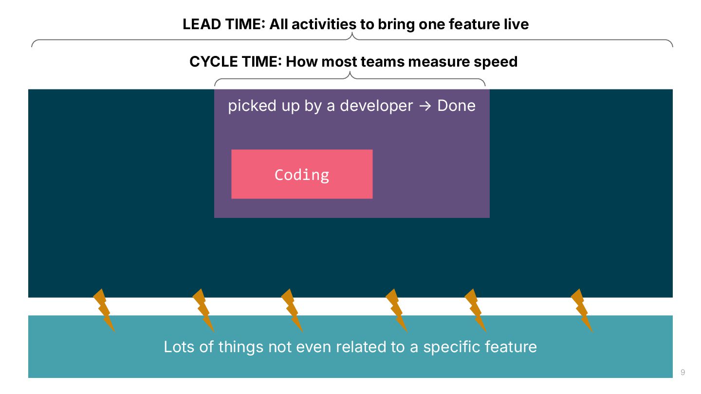 Done CYCLE TIME How most teams measure speed Coding LEAD TIME All activities to bring one feature live Lots of things not even related to a specific feature
