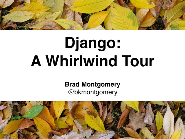 by Tracy Osborne • Design and build your own custom web app using Python and Django. Tailored for non- programmers, written by a designer. • Two Scoops of Django by Daniel & Audrey Roy Greenfeld • github.com/bradmontgomery/whirlwind_tour