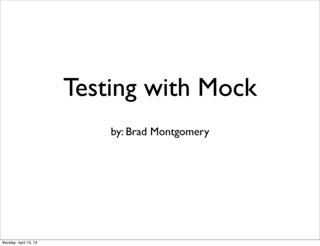 will raise an # AttributeError if any attr is not in the spec mock_activity = Mock(spec=['title']) # provide a return value for the ``activities`` method config = {'activities.return_value': [mock_activity]} mock_user_instance = Mock(**config) # Mock User Class (via patch) config = {'objects.get.return_value': mock_user_instance} with patch('examples.User', **config) as mock_user_class: list_user_activities('xavier') mock_user_class.assert_has_calls([ call.objects.get(username='xavier') ]) mock_user_instance.assert_has_calls([ call.activities() ]) Monday, April 15, 13