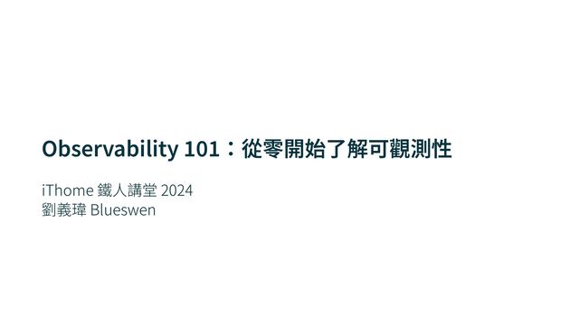 iThome 鐵⼈講堂 2024 劉義瑋 Blueswen Observability 1 0 1 :從零開始了解可觀測性