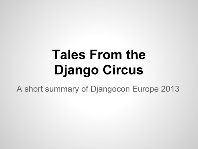 Tales From the Django Circus A short summary of Djangocon