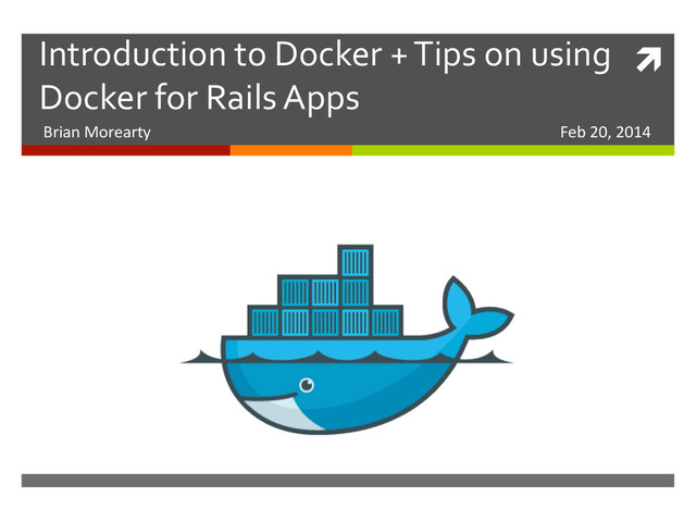 Takes minutes the first Qme. • Takes seconds the next Qme. • Only re-‐executes any steps a]er the first one that changed. ! $ docker build -t railsapp .!