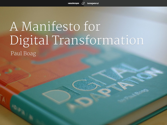 But help is at hand. ! — Digital Adaptation - the book — Posts on digital transformation — Posts on web governance — Video presentation on digital transformation — Digital transformation specialist ! ! To discuss any of the themes covered in this manifesto please feel free to email Paul or contact him via Twitter. Resources