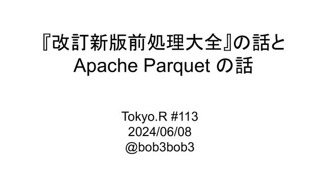『改訂新版前処理大全』の話と Apache Parquet の話 Tokyo.R #113 2024/06/08 @bob3bob3
