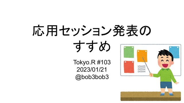 応用セッション発表の すすめ Tokyo.R #103 2023/01/21 @bob3bob3