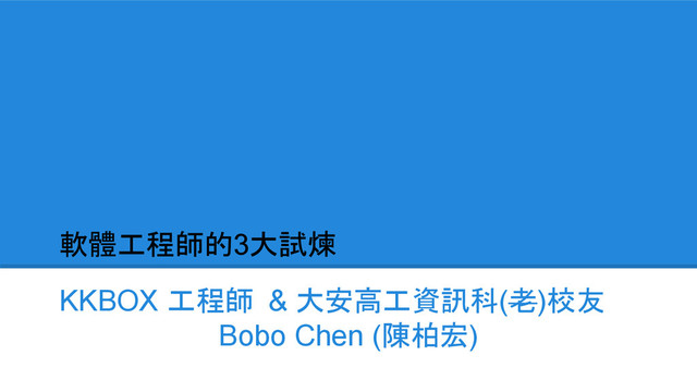 軟體工程師的3大試煉 KKBOX 工程師 & 大安高工資訊科(老)校友 Bobo Chen (陳柏宏)