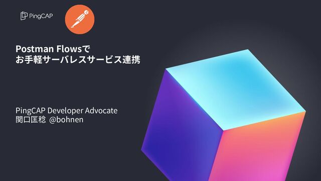 Postman Flowsで お⼿軽サーバレスサービス連携 PingCAP Developer Advocate 関⼝匡稔 @bohnen