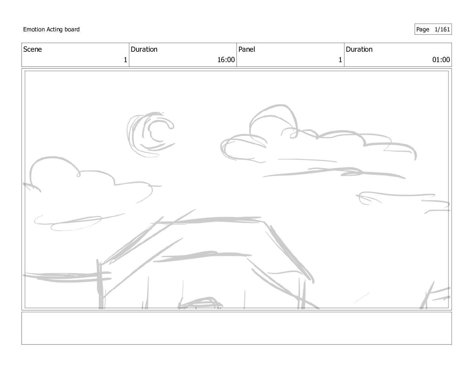 Scene 1 Duration 16:00 Panel 1 Duration 01:00 Emotion Acting