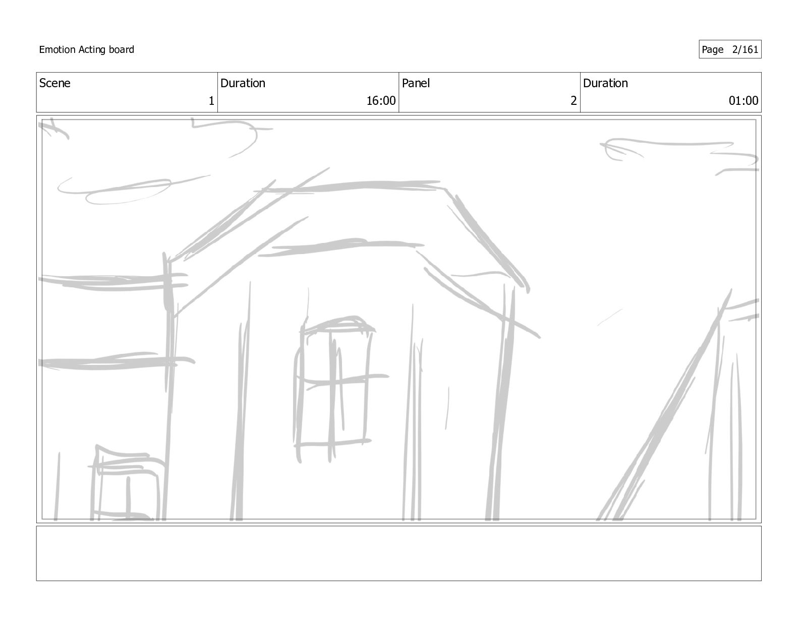 Scene 1 Duration 16:00 Panel 2 Duration 01:00 Emotion Acting