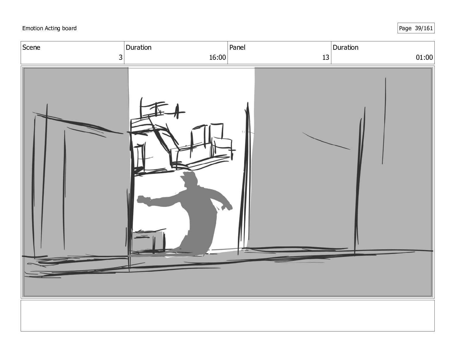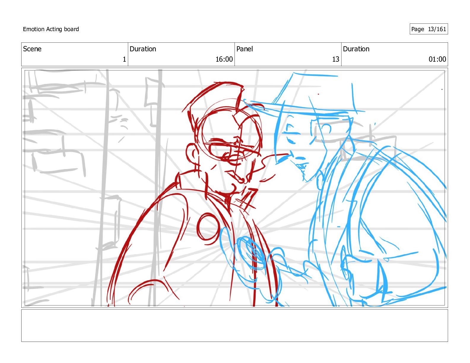 Scene 13 Duration 03:00 Panel 1 Duration 01:00 Emotion Acting