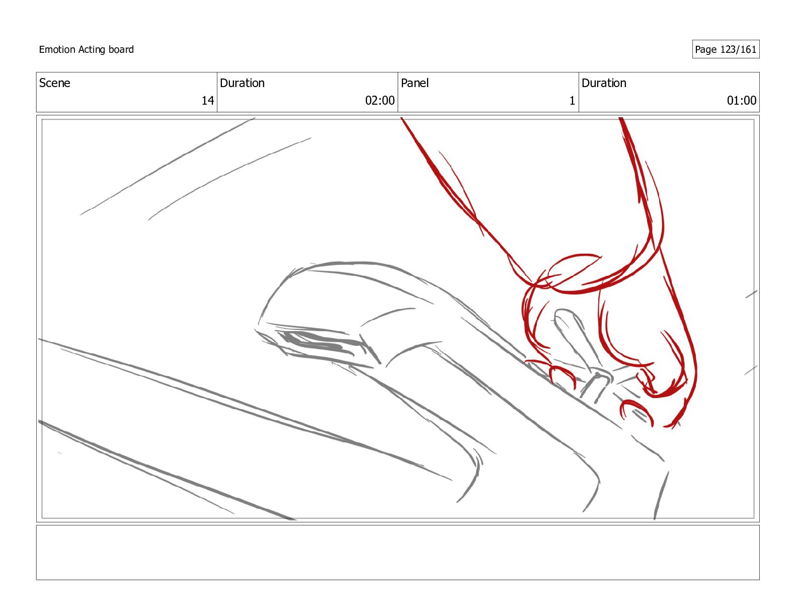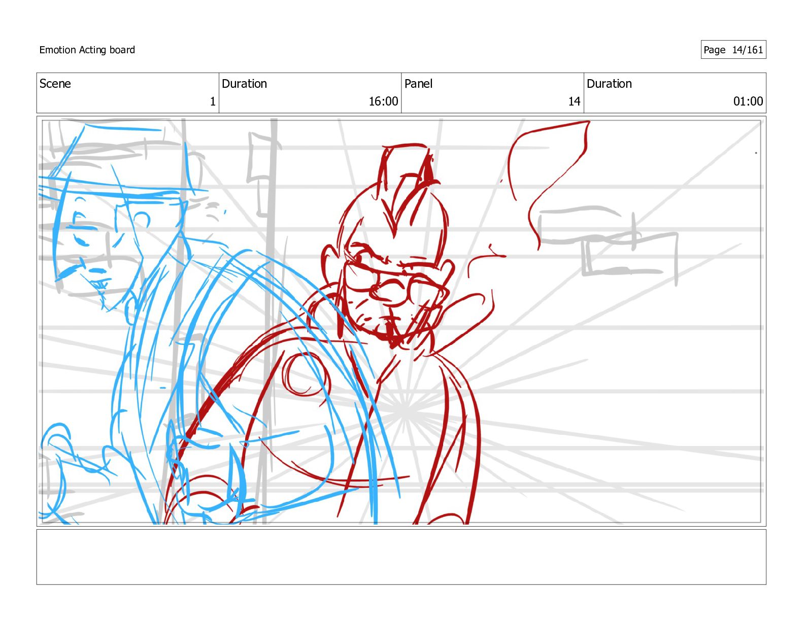 Scene 14 Duration 02:00 Panel 1 Duration 01:00 Emotion Acting