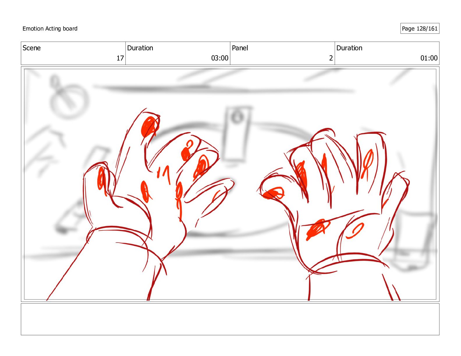 Scene 17 Duration 03:00 Panel 1 Duration 01:00 Emotion Acting
