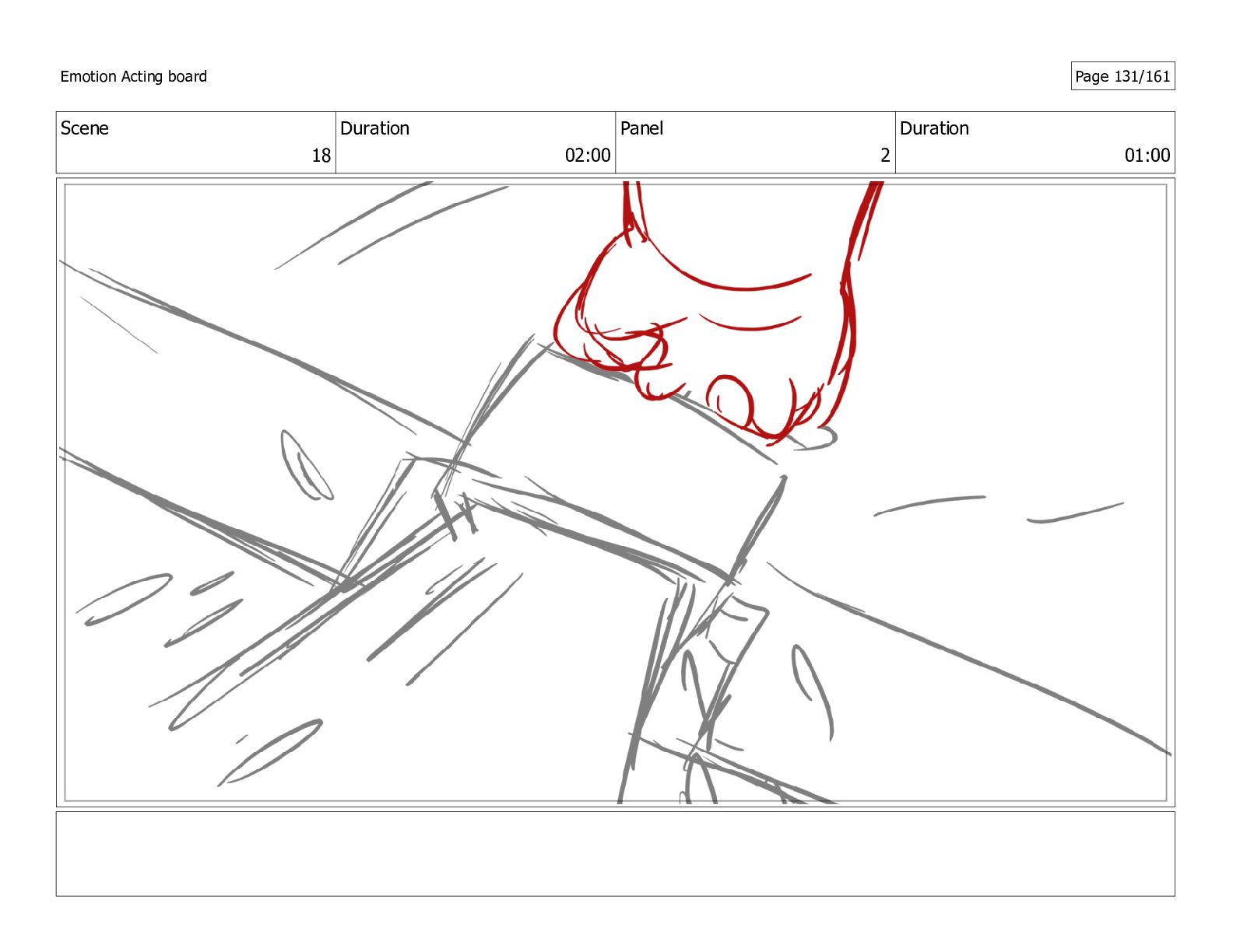 Scene 18 Duration 02:00 Panel 1 Duration 01:00 Emotion Acting