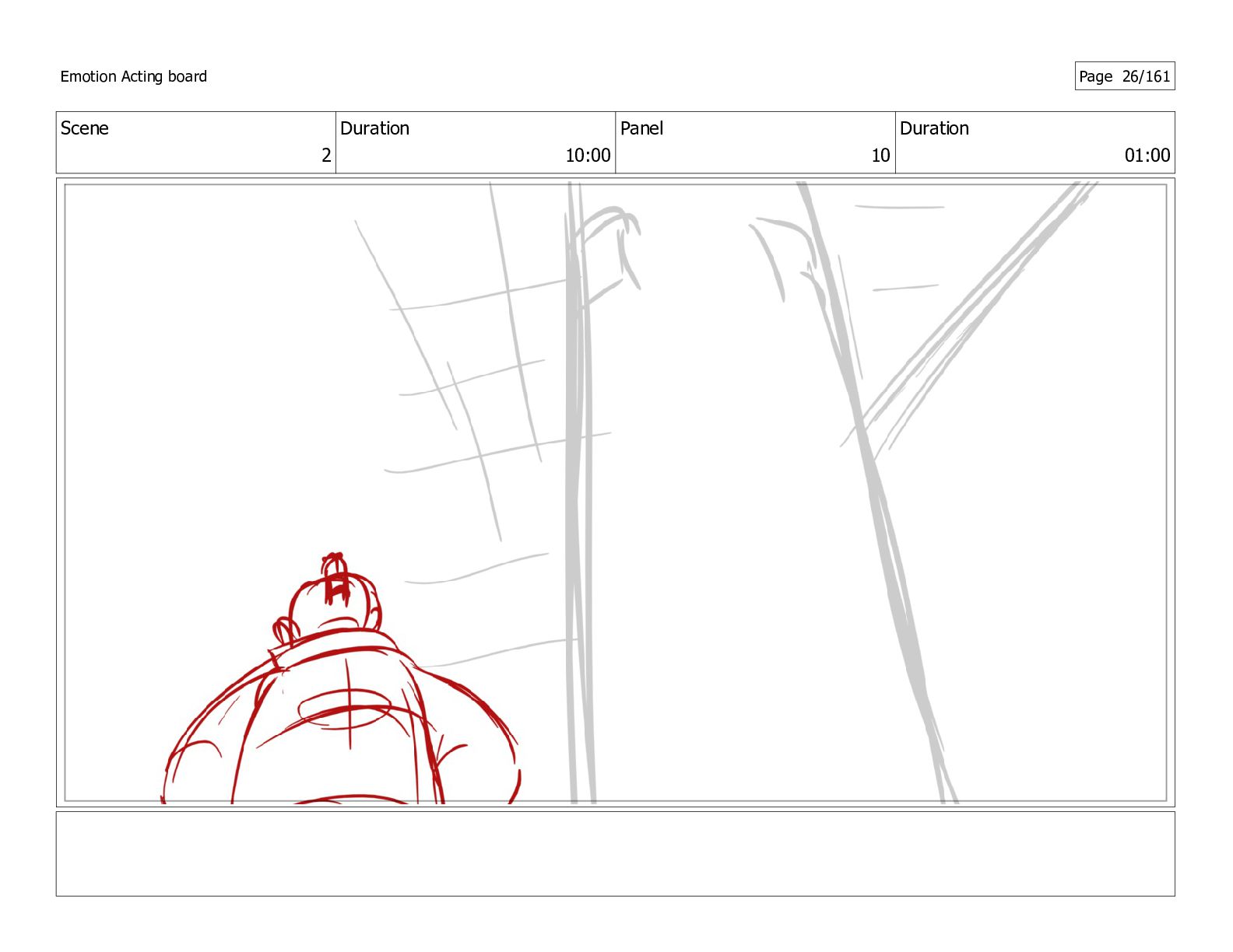 Scene 26 Duration 10:00 Panel 1 Duration 01:00 Emotion Acting