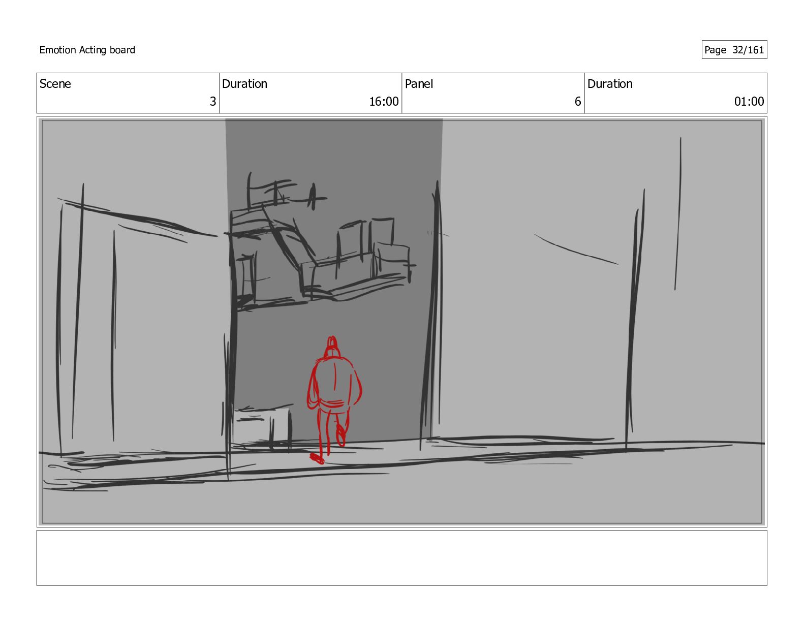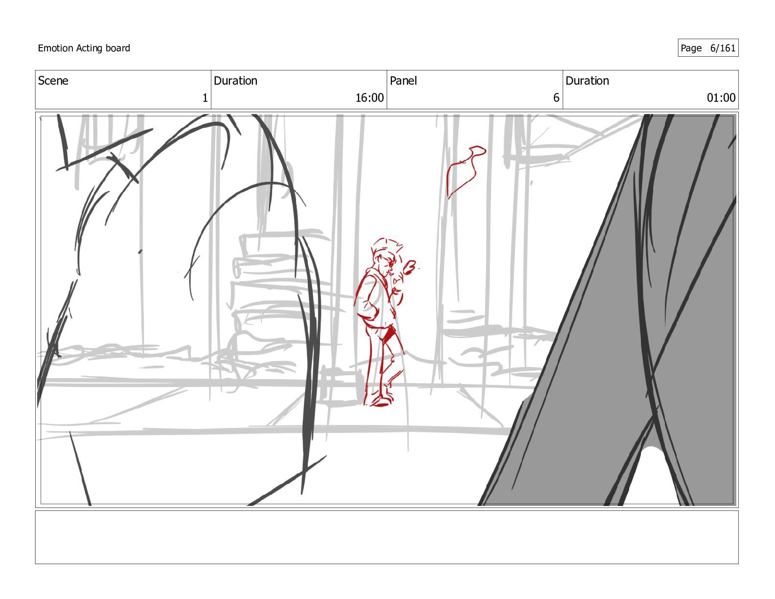 Scene 1 Duration 16:00 Panel 6 Duration 01:00 Emotion Acting