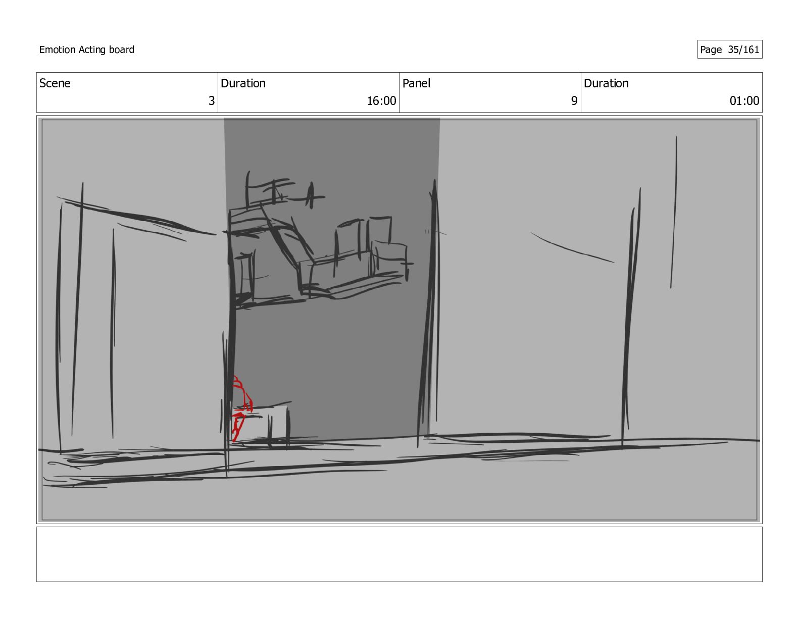 Scene 1 Duration 16:00 Panel 3 Duration 01:00 Emotion Acting