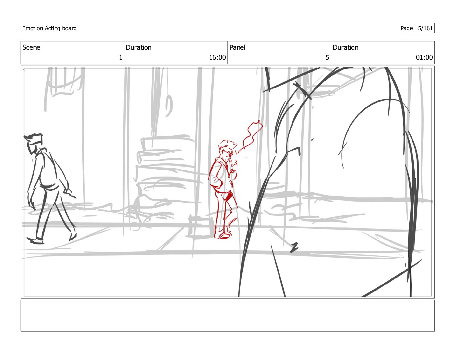 Scene 1 Duration 16:00 Panel 5 Duration 01:00 Emotion Acting