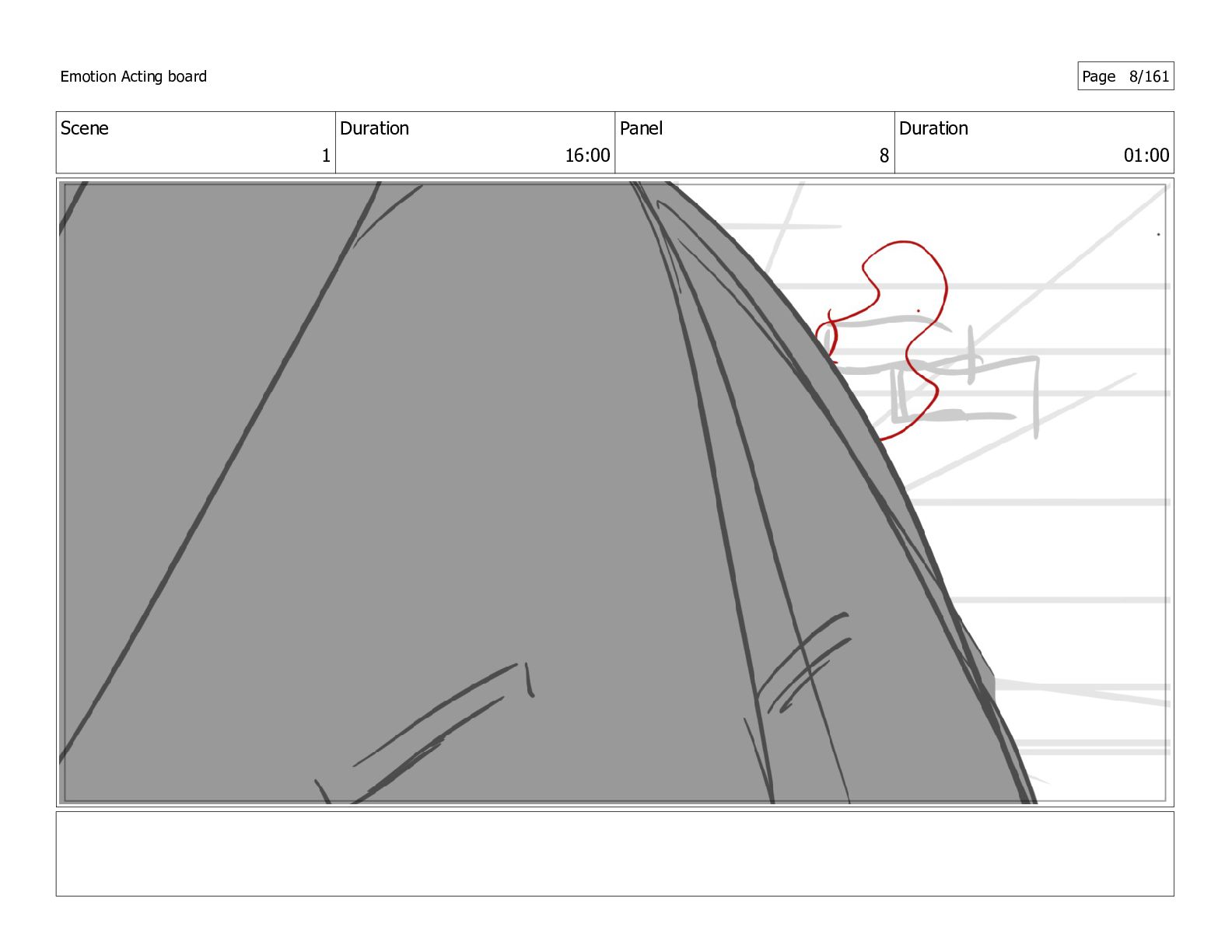 Scene 1 Duration 16:00 Panel 8 Duration 01:00 Emotion Acting