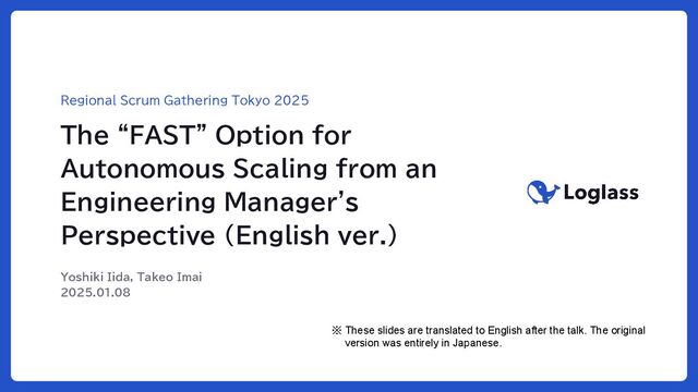 This is a talk given at Regional Scrum Gathering Tokyo 2025, about the story of an engineering manager facing organizational autonomy through the adoption of FAST.