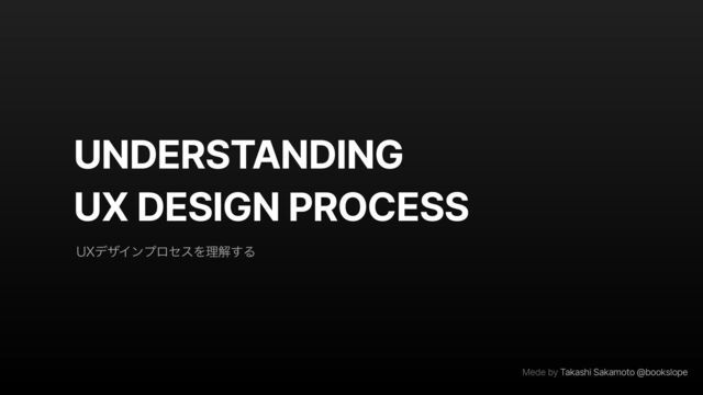 UNDERSTANDING UX DESIGN PROCESS Mede by Takashi Sakamoto @bookslope