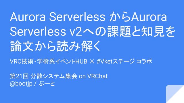 Aurora Serverless からAurora Serverless v2への課題と知見を 論文から読み解く VRC技術・学術系イベントHUB ✕ #Vketステージ コラボ