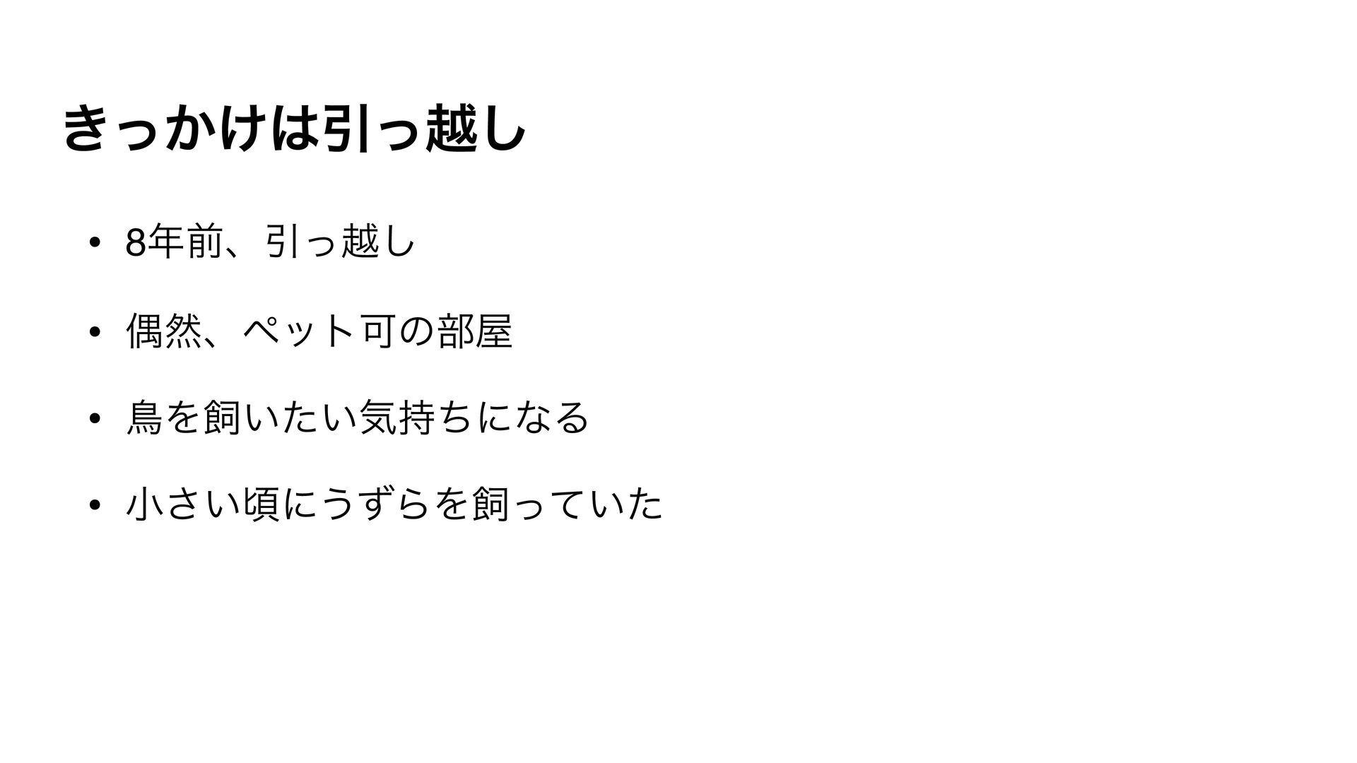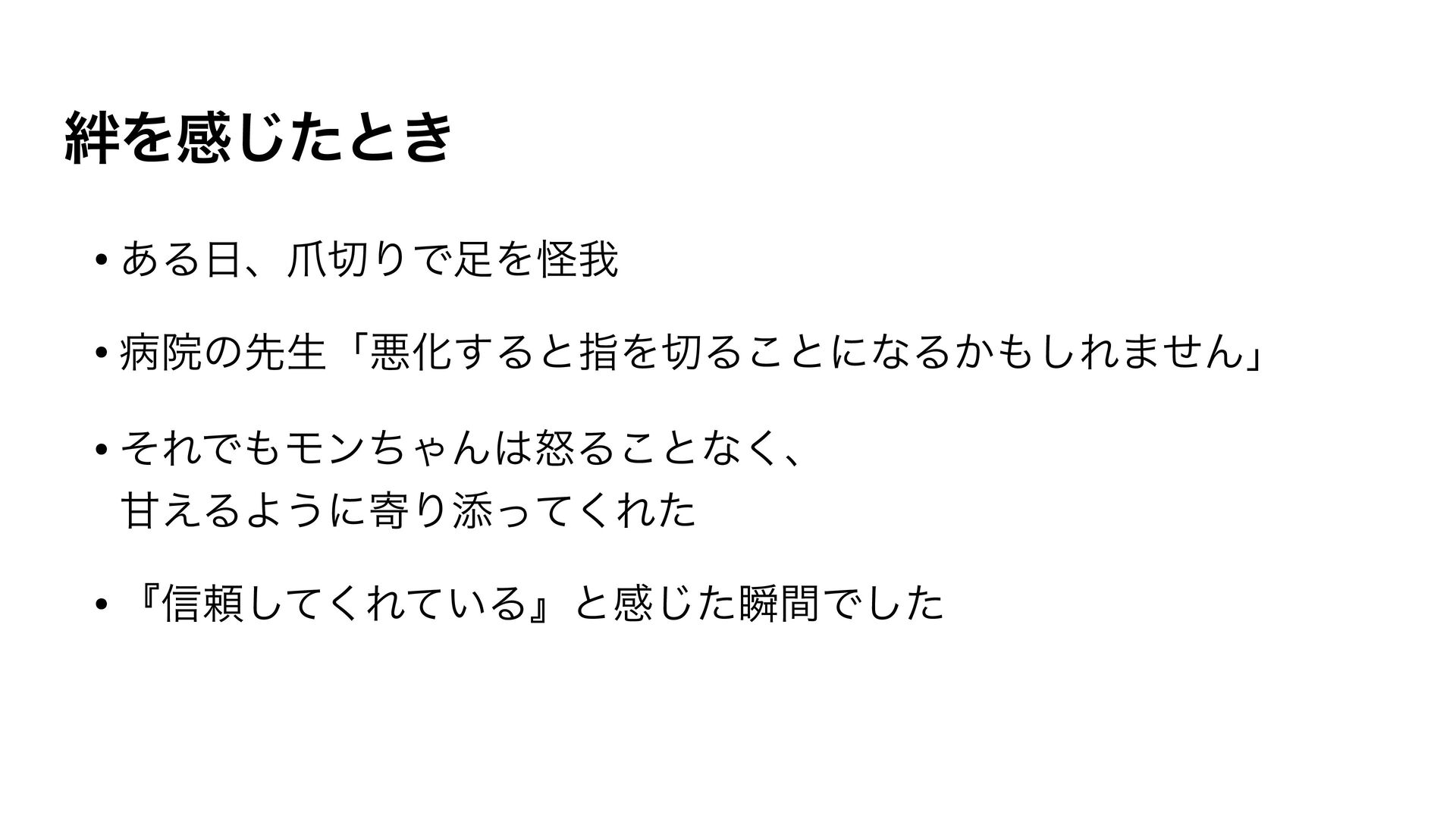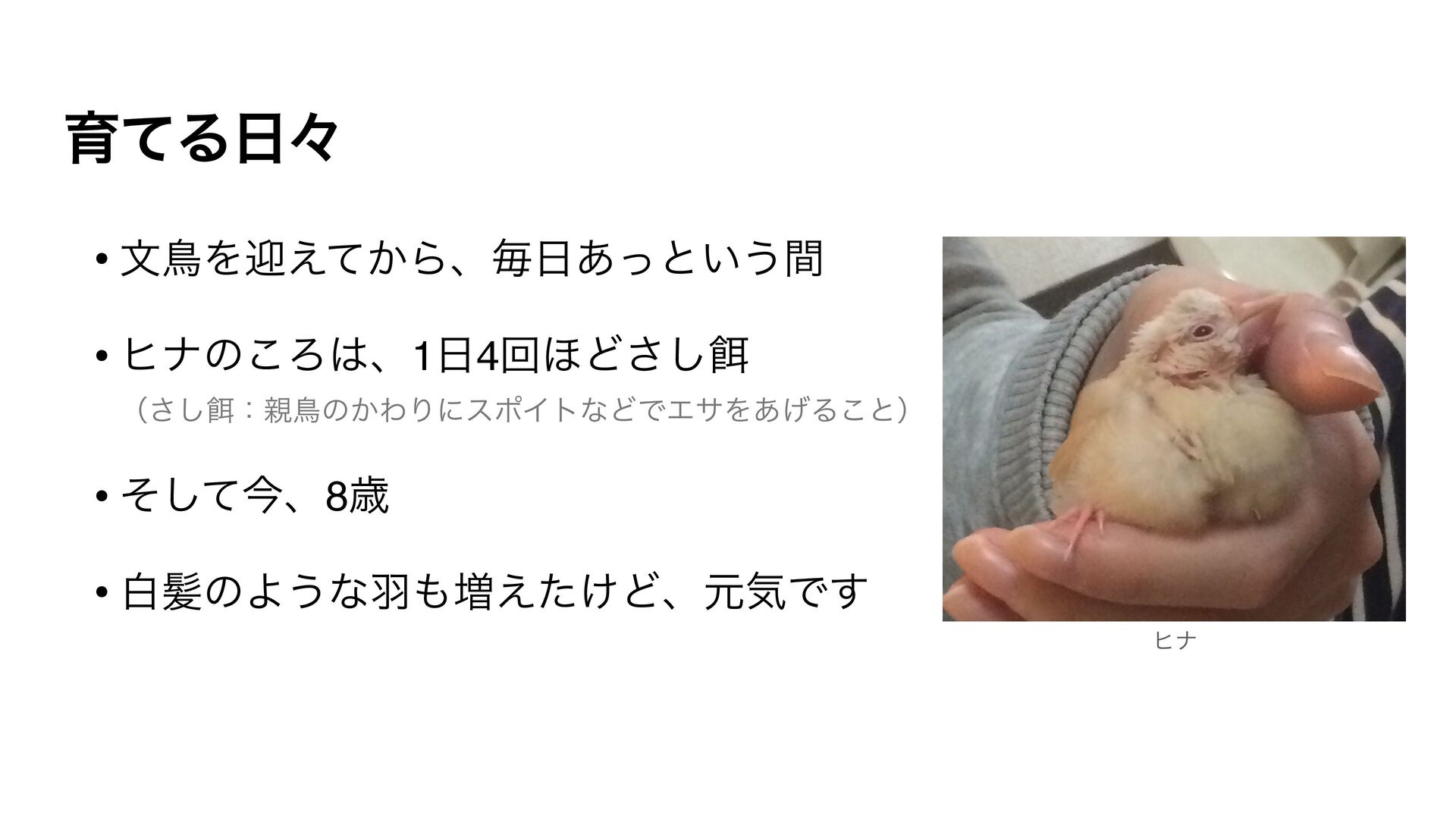 ҭͯΔʑ • จௗΛܴ͔͑ͯΒɺຖ͋ͬͱ͍͏ؒ • ώφͷ͜Ζɺ14ճ΄Ͳ͞͠㕒 ʢ͞͠㕒ɿௗͷ͔ΘΓʹεϙΠτͳͲͰΤαΛ͋͛Δ͜ͱʣ • ͦͯ͠ࠓɺ8ࡀ • നͷΑ͏ͳӋ૿͚͑ͨͲɺݩؾͰ͢