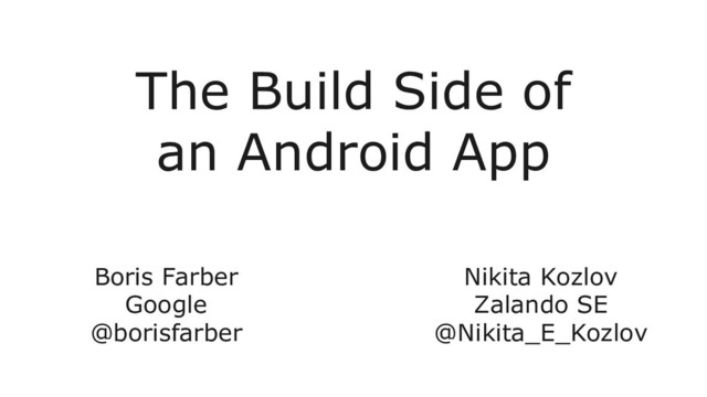 The Build Side of an Android App Nikita Kozlov Zalando