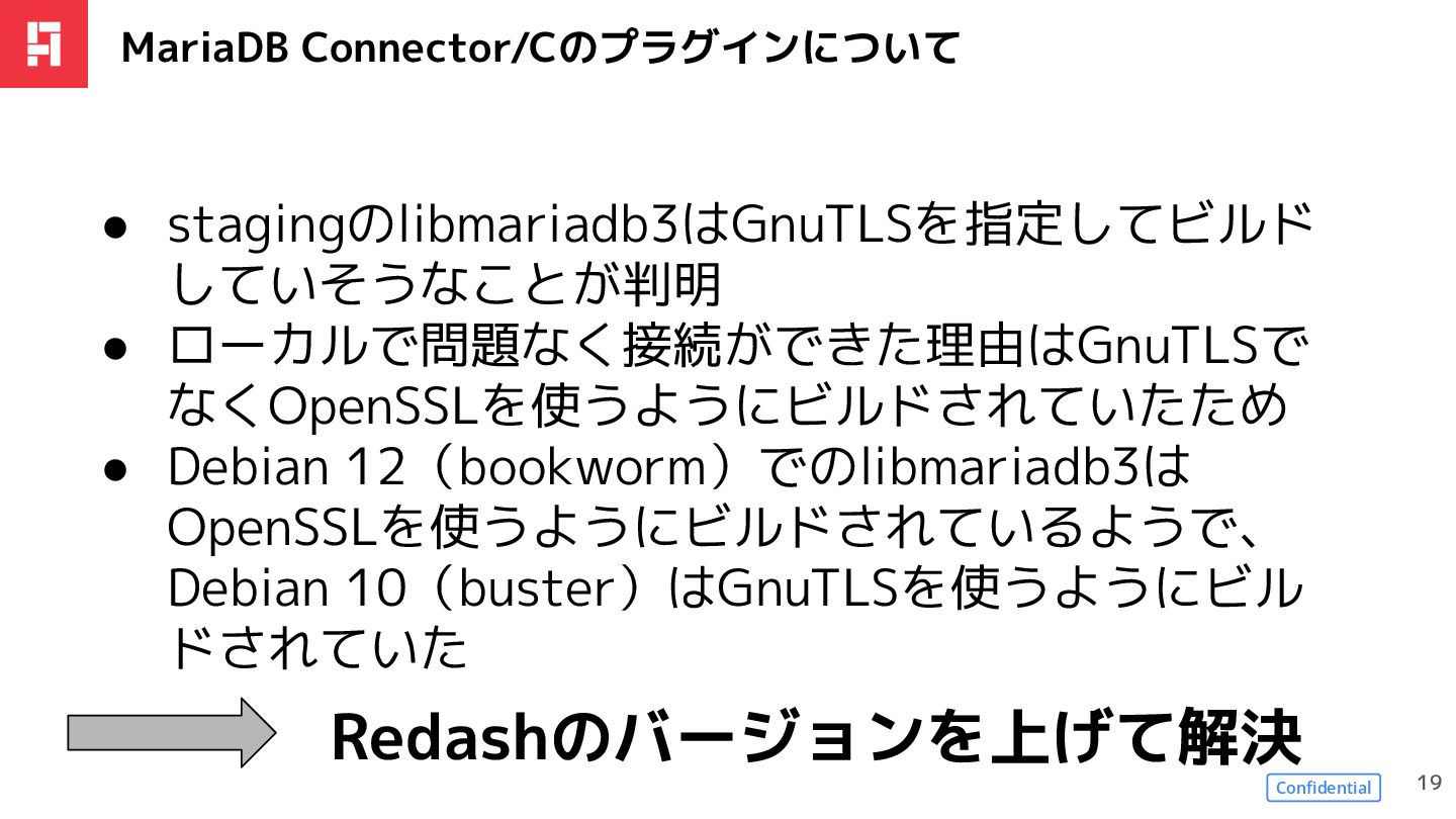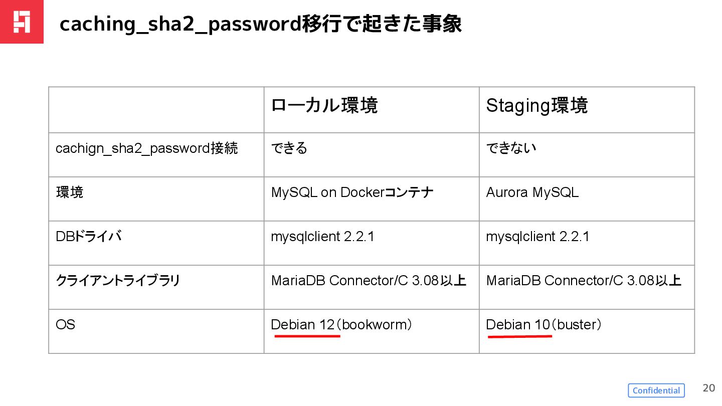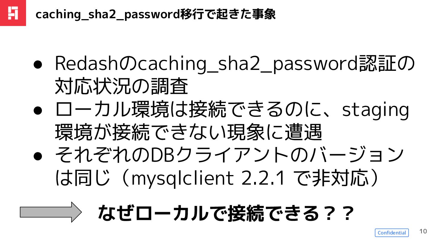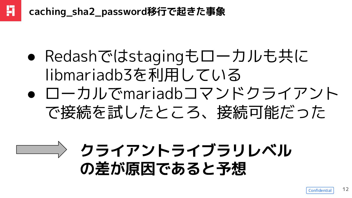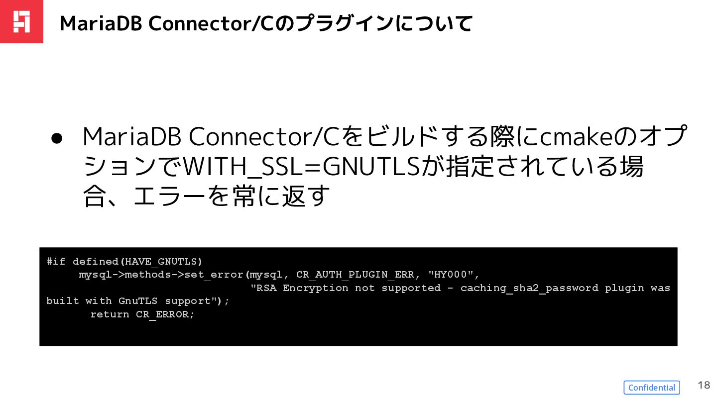 file was specified or if we couldn't read the file, we ask server to send public key */ if (!filebuffer) { unsigned char request= REQUEST_PUBLIC_KEY; if (vio->write_packet(vio, &request, 1) || (packet_length=vio->read_packet(vio, &packet)) == -1) { mysql->methods->set_error(mysql, CR_AUTH_PLUGIN_ERR, "HY000", "Couldn't read RSA public key from server"); return CR_ERROR; } } • 実際にソースを見ると公開鍵のリクエスト している部分が見られた