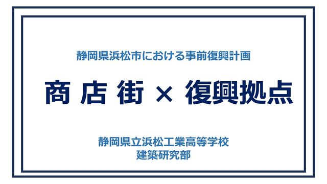 静岡県⽴浜松⼯業⾼等学校 建築研究部 静岡県浜松市における事前復興計画 商 店 街 × 復興拠点