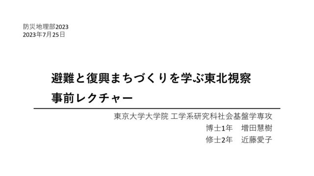 2023年7月25日から3泊4日で愛媛県の宇和海沿岸の高校生が東日本大震災の被災地を訪れました。その事前学習として、震災復興を5つの要素 (地形と土地利用、海との関係、各まちの拠点、産業の再生、まちの歴史)からまとめました。