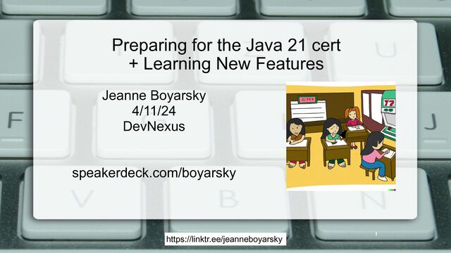 study materials Option 2: 1. Study from a Java 17 study guide 2. Read about Java 18-21 features 3. Focus on edge cases 4. Do any practice questions you can find This talk helps with option 2. Or if you just want to learn