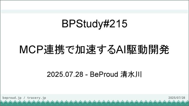 2025/07/28 beproud.jp / tracery.jp BPStudy#215 MCP連携で加速するAI駆動開発 2025.07.28 - BeProud 清水川