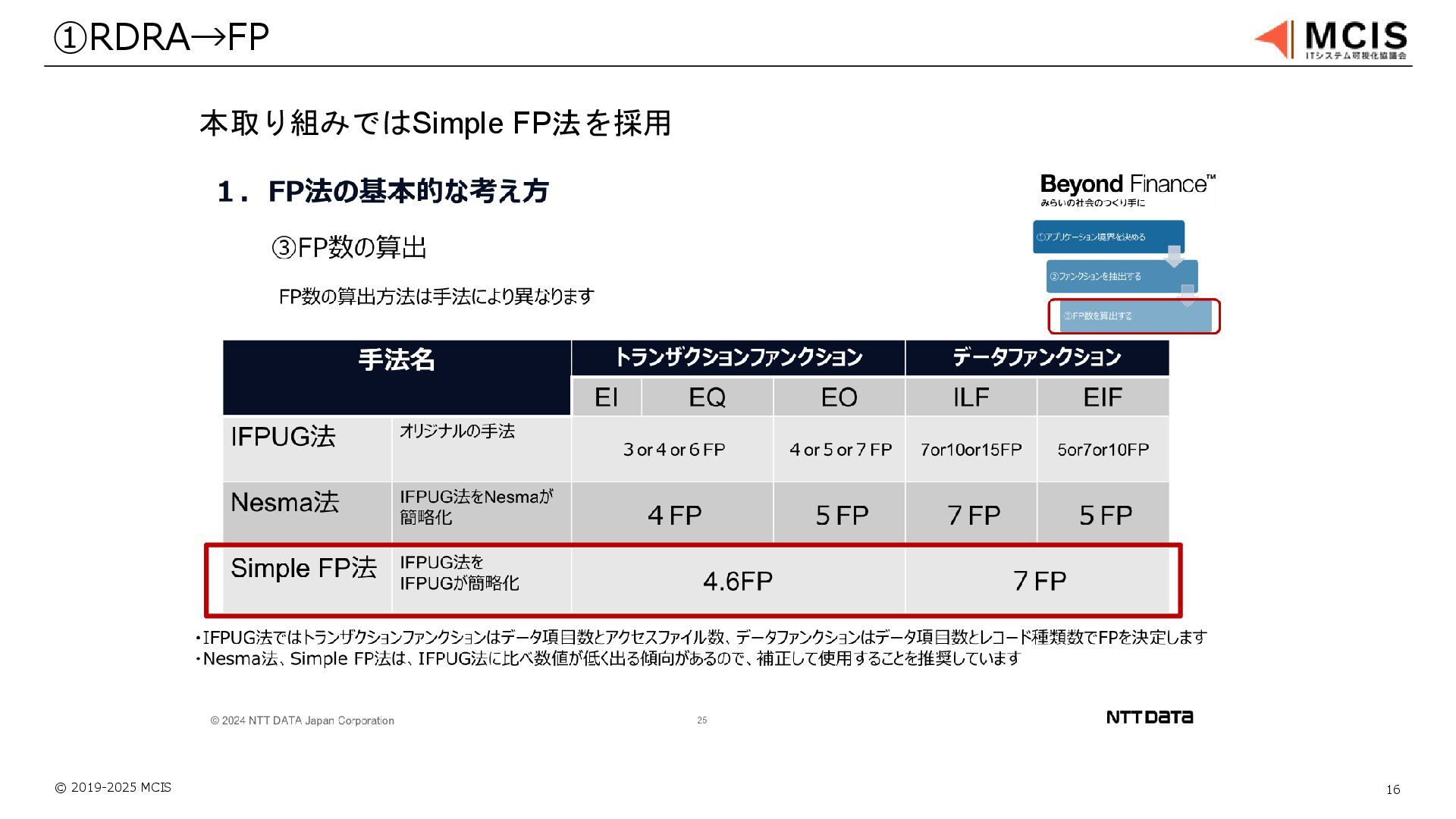© 2019-2025 MCIS 16 ①RDRA→FP 本取り組みではSimple FP法を採用