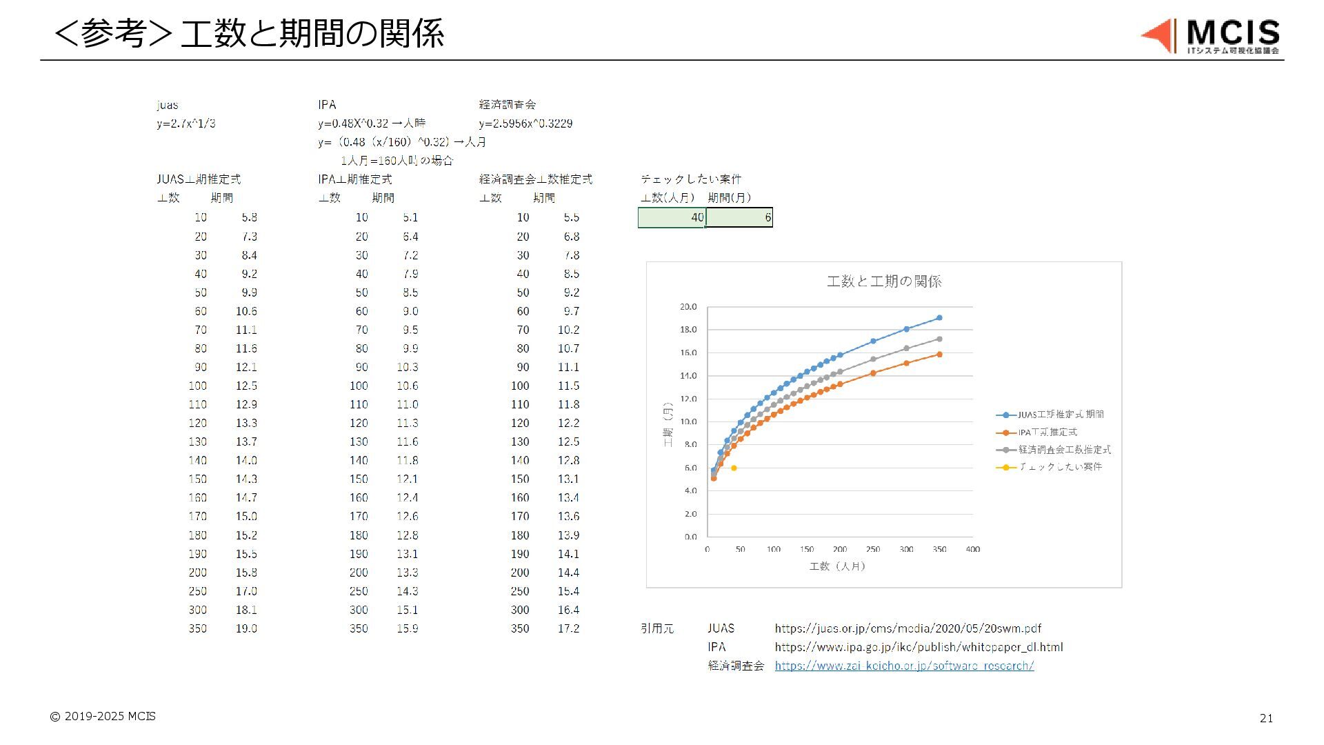 © 2019-2025 MCIS 21 <参考>工数と期間の関係