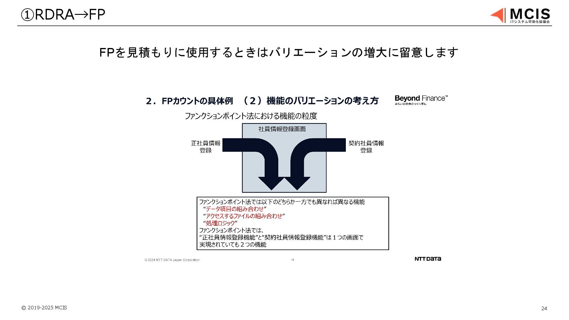 © 2019-2025 MCIS 24 ①RDRA→FP FPを見積もりに使用するときはバリエーションの増大に留意します