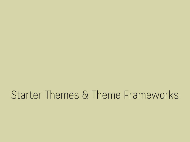 "drop-in" code library that is used to facilitate development of a Theme • A stand-alone base/starter Theme that is intended either to be forked into another Theme, or else to be used as a Parent Theme template What’s a theme framework?