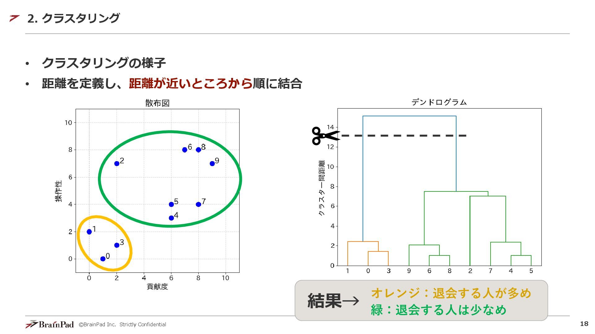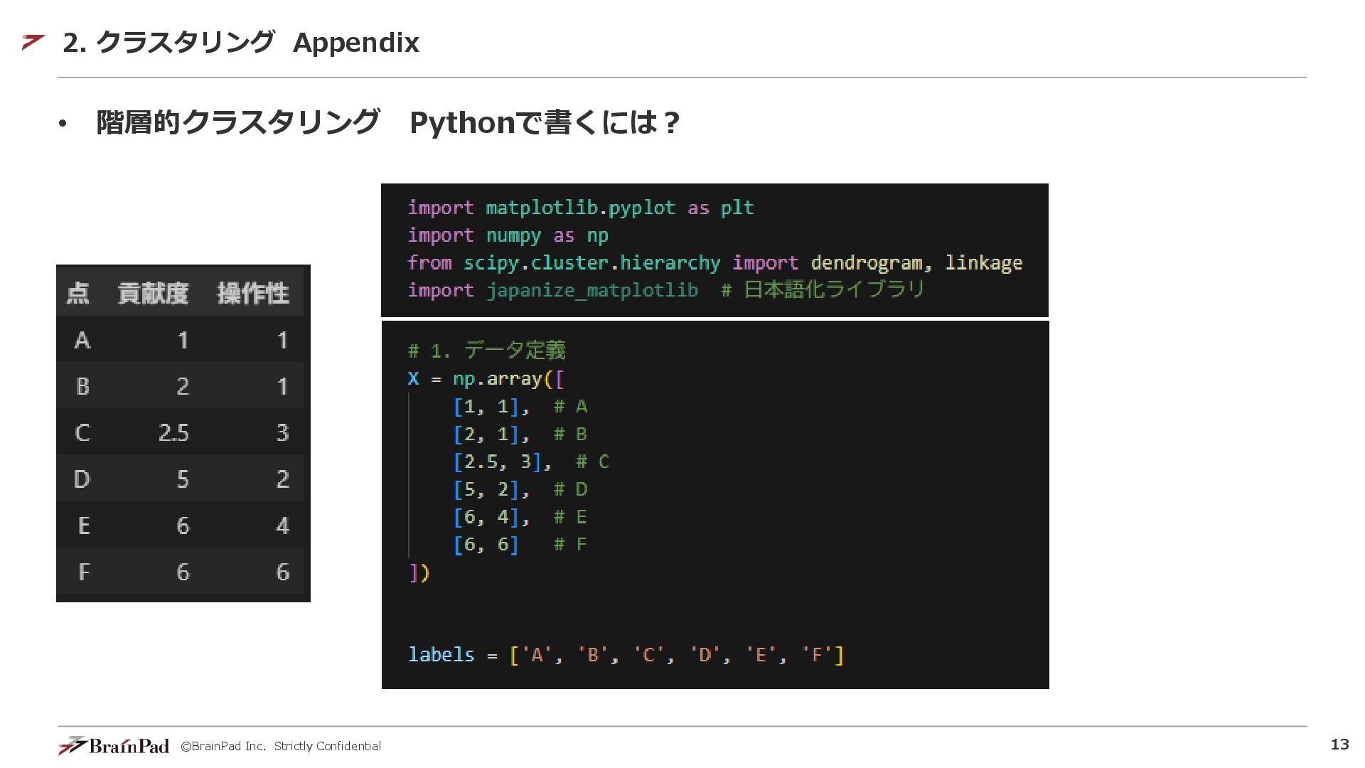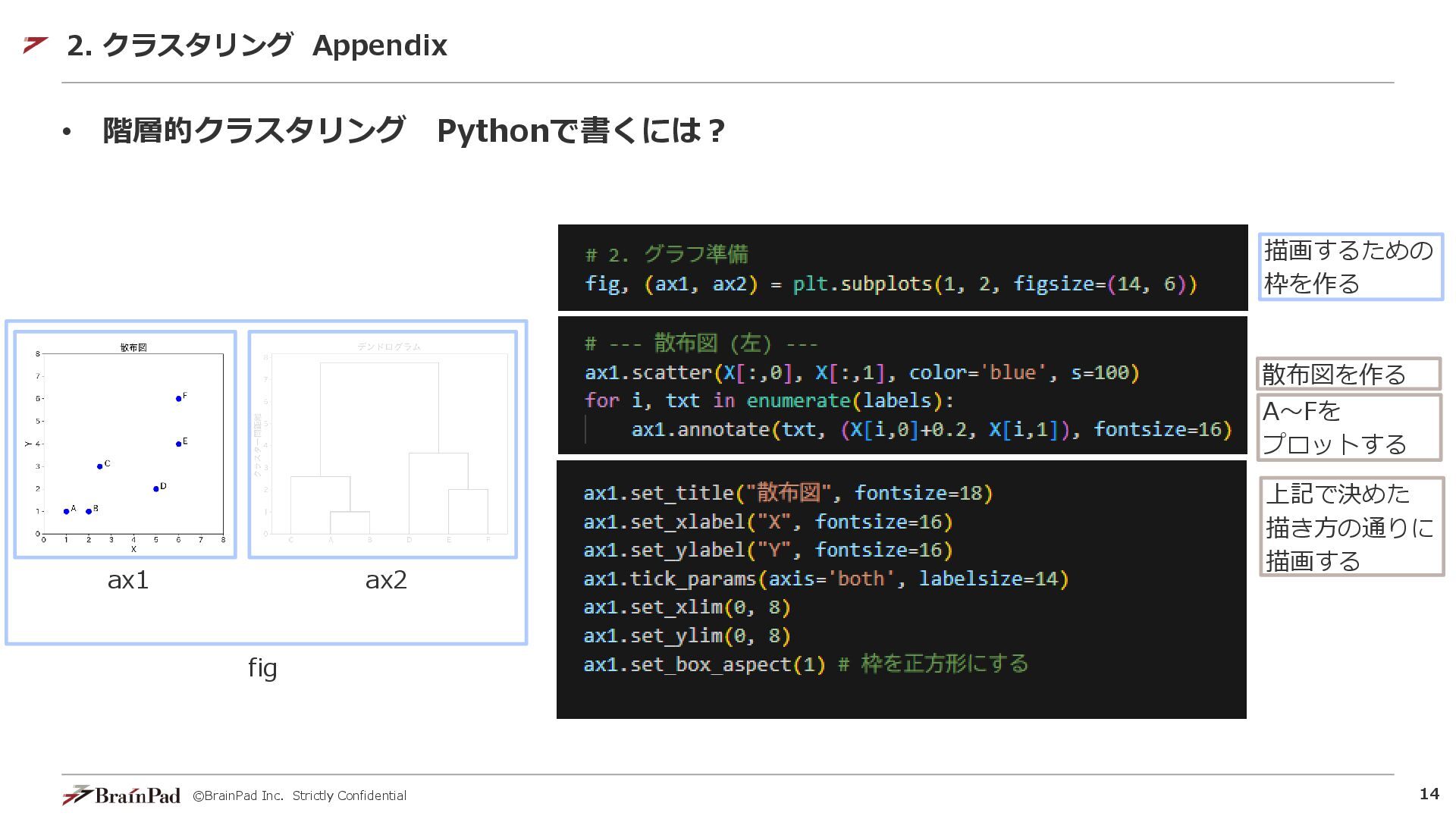 ©BrainPad Inc. Strictly Confidential 13 • 階層的クラスタリング Pythonで書くには? 2. クラスタリング