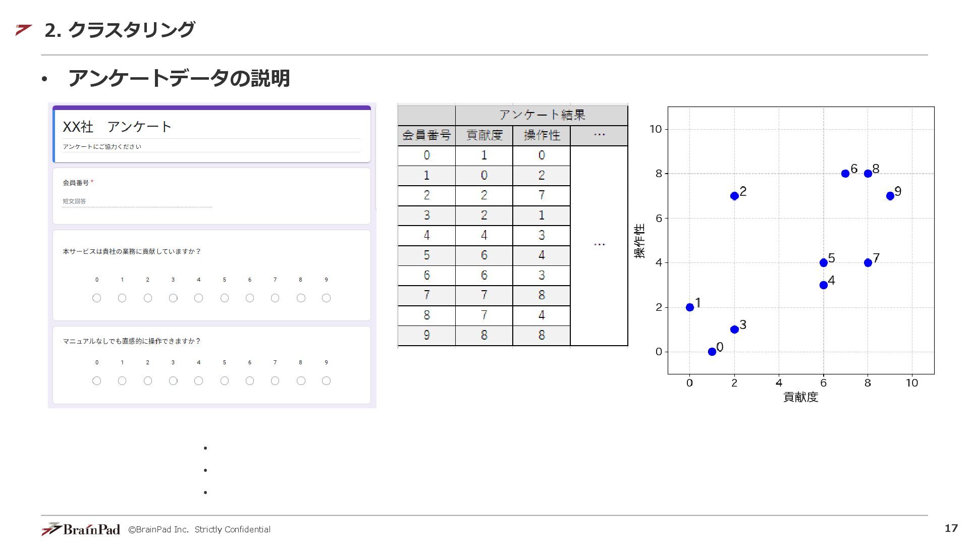 ©BrainPad Inc. Strictly Confidential 17 • アンケートデータの説明 2. クラスタリング ・